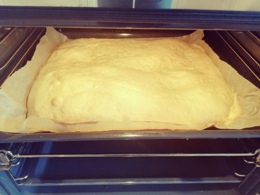 Und für 15 min. backen. Der Teig sollte eine leichte Bräune bekommen haben.