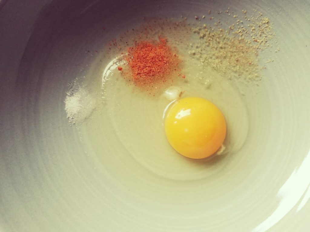 In der Zwischenzeit kann das Ei mit den Gewürzen verquirlt werden.