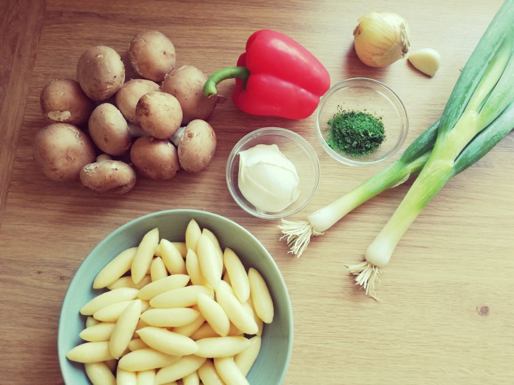 - 1 Packung Schupfnudeln aus der Frischetheke (bei mehr als 2 Erwachsenen besser 2 Packungen oder selber machen)