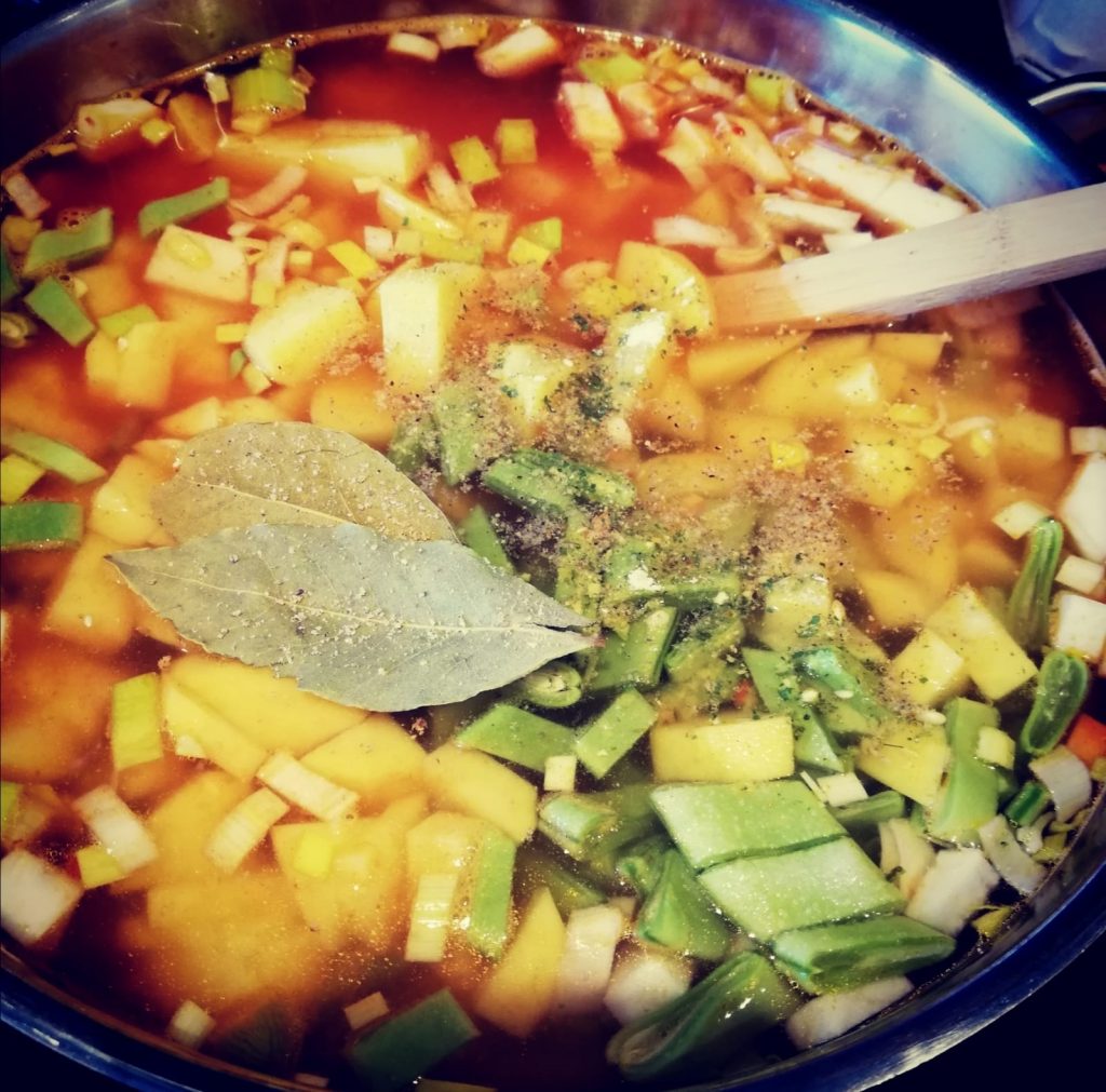 Jetzt muss die Suppe nur noch für ca. 20 min. kochen. Je nachdem wie bissfest man das Gemüse mag. Auf jeden Fall nochmal abschmecken, da bei so viel Gemüse Salz gebraucht wird.